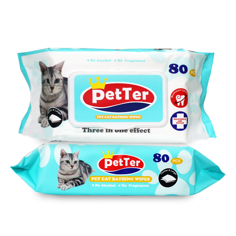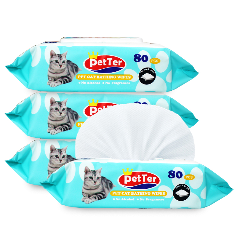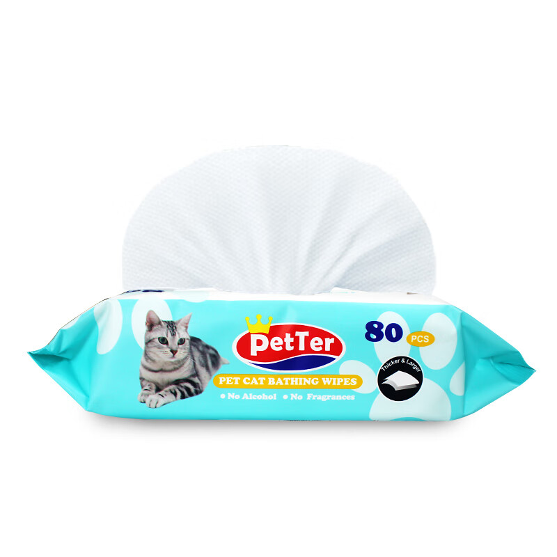 PetTer宠物湿巾猫咪沐浴去味擦泪痕湿巾除味清洁便携抽纸猫咪专用纸巾80片*4包
