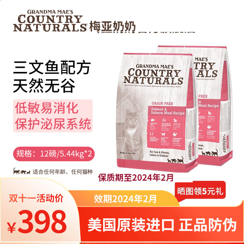 GRANDMA MAE'S COUNTRY NATURALS梅亚奶奶猫粮幼猫成猫美国进口无谷低敏三文鱼全阶段猫粮 12磅三文鱼*2/10.44kg