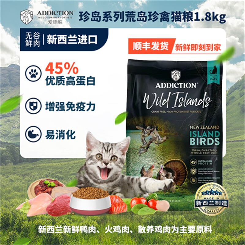 爱德胜(Addiction)猫粮超45%高蛋白猫粮1.8kg新西兰进口无谷低敏荒岛珍禽猫粮 荒岛珍禽猫粮(1.8KG) 成猫