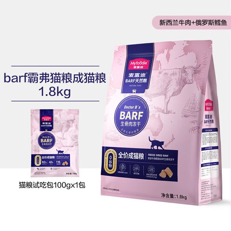 麦富迪barf霸弗猫粮生骨肉主食冻干双拼营养高蛋白全价通用成猫粮 牛肉 鳕鱼成猫粮 1.8kg 0lb