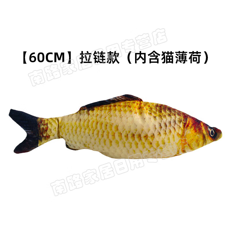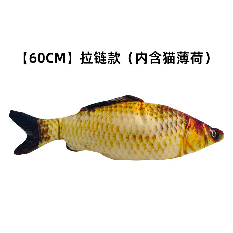 猫咪玩具自嗨解闷猫薄荷磨牙棒耐咬幼猫抱枕仿真鱼逗猫棒宠物用品 [鲫鱼款超大号]约60C/M有拉链(内