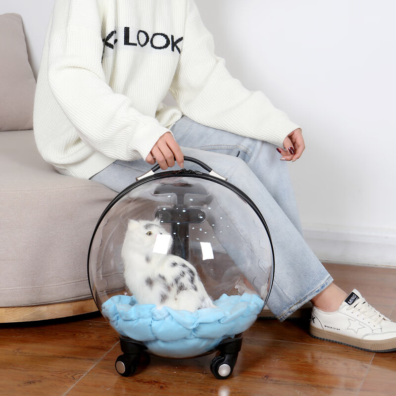 宠天使猫包宠物拉杆箱猫咪外出便携包透明太空舱狗行李箱大空间猫外出箱 K10透明拉杆箱 猫咪12斤内和狗狗8斤内