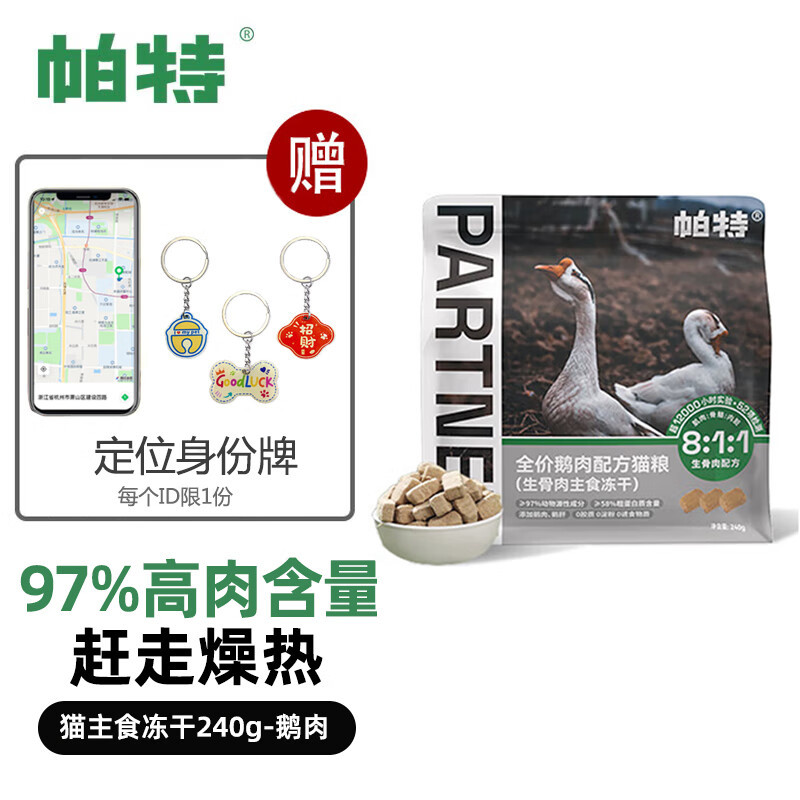 帕特冻干猫粮主食冻干成幼猫生骨肉兔肉冻干全阶段无谷增肥高蛋白猫粮 鹅肉冻干240g*2包