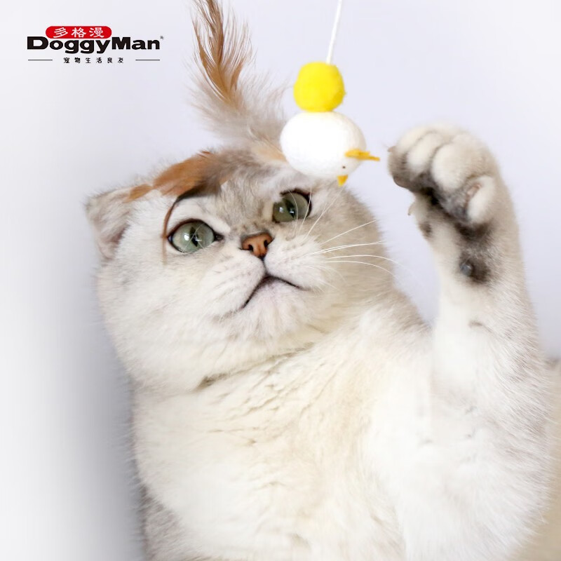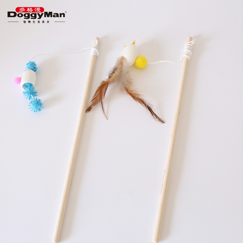 日本多格漫Doggyman猫咪蚕茧逗猫棒 逗猫杆 长绳木杆天然蚕茧 雏鸡