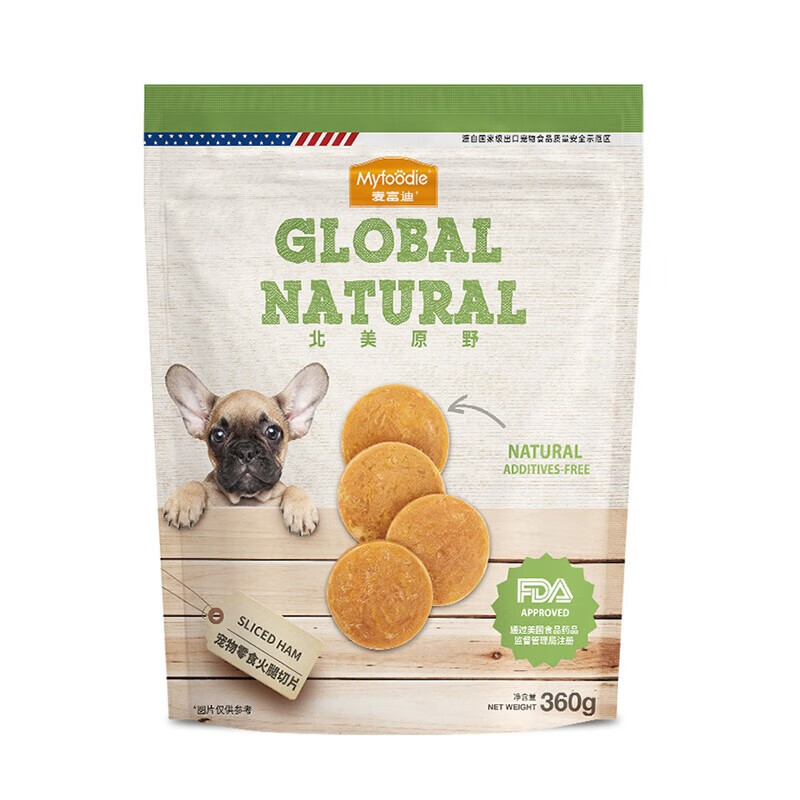 麦富迪(Myfoodie)狗狗零食北美原野系列磨牙解馋鸡鸭肉干比熊泰迪宠物训练奖励360g 火腿切片360g