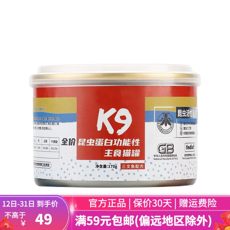 K9主食罐全价功能性无谷鲜肉罐头幼猫湿粮成猫主粮 昆虫蛋白功能性猫罐170g*4