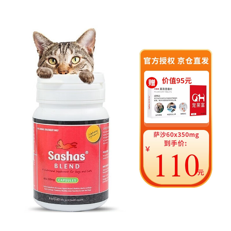 【8仓发货】萨沙sashas关节灵鲨鱼软骨素狗猫咪关节炎胶囊粒病疼痛宠物补钙片骨折关节修护骨质疏松 60颗/瓶【猫用】