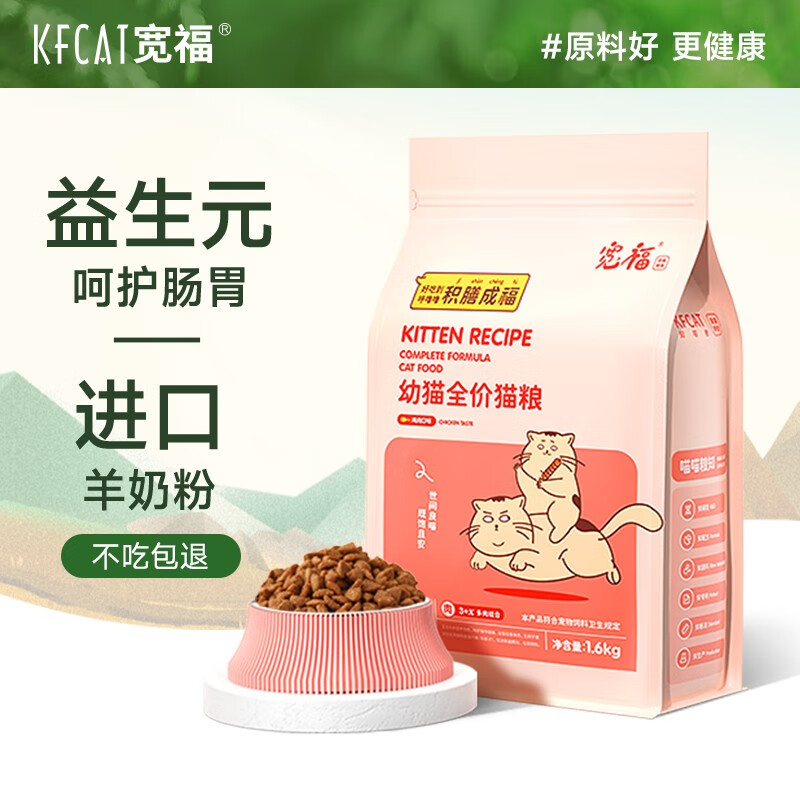 宽福猫粮幼猫增肥发腮天然粮营养猫粮专用1个月以上可吃离乳期猫食 【呵护肠胃 添加羊奶粉】幼猫粮3.2斤 鸡肉味-升级装
