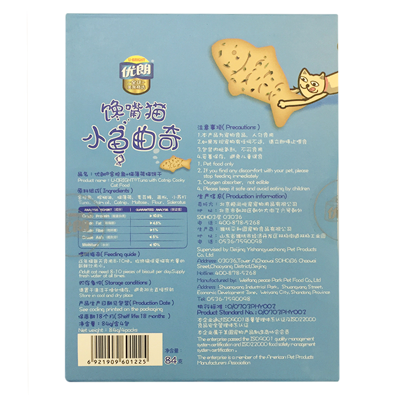优朗(U-BRIGHT)宠物猫用金枪鱼加猫薄荷猫饼干84g