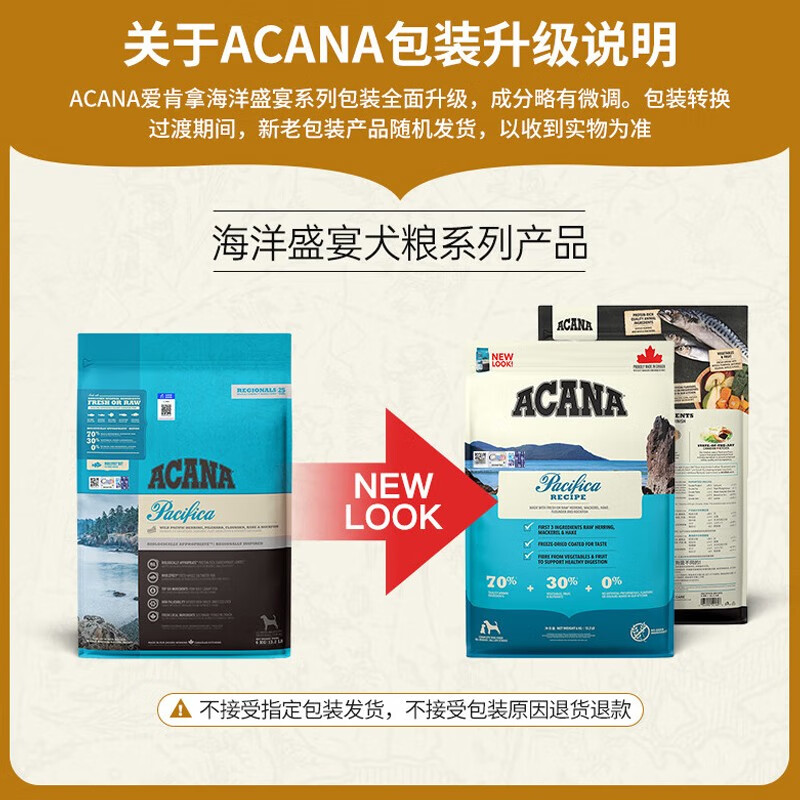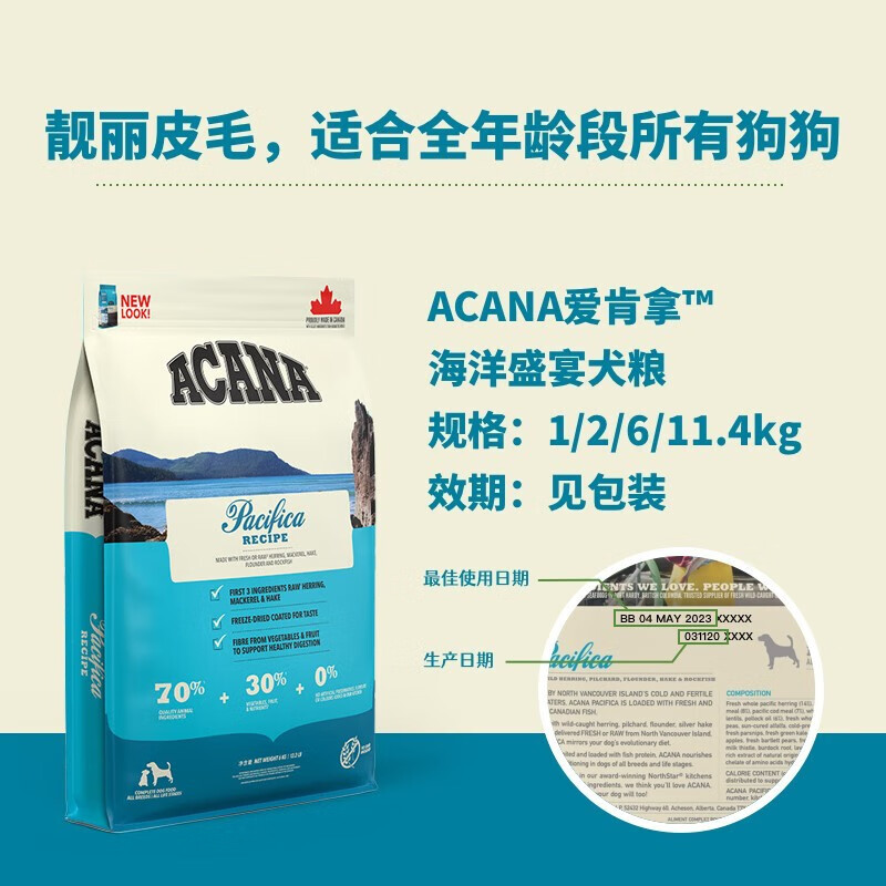 爱肯拿(ACANA)狗粮美国进口无谷天然成犬幼犬狗粮 海洋盛宴11.4kg【效期24.3.29】