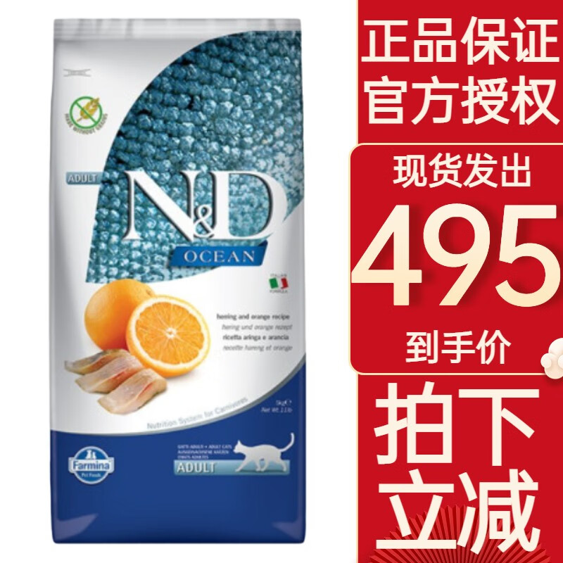 法米娜Farmina猫粮鸡肉鱼肉猪肉无谷猫粮意大利进口成猫幼猫猫粮 鲱鱼甜橙成猫粮5kg日期新鲜