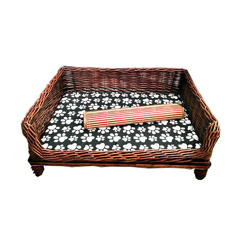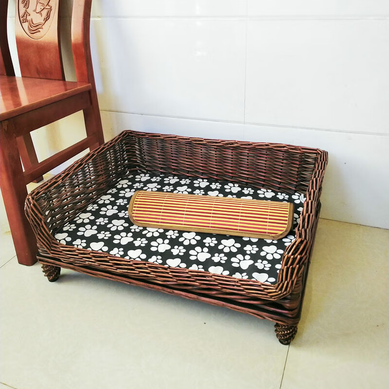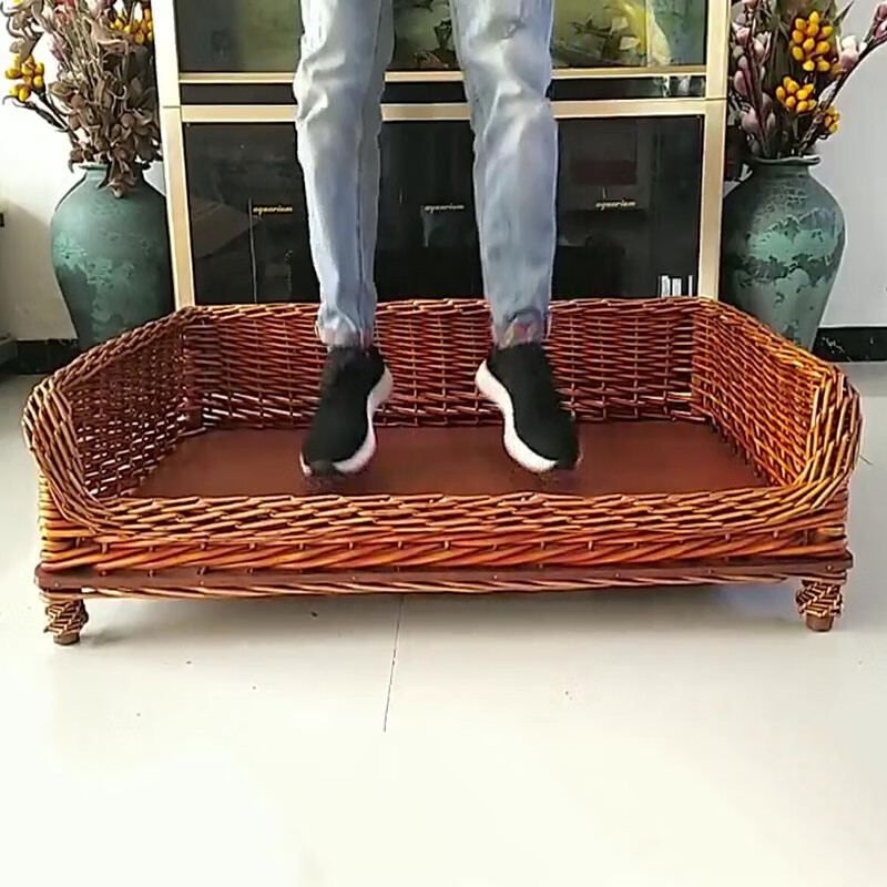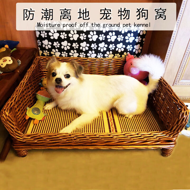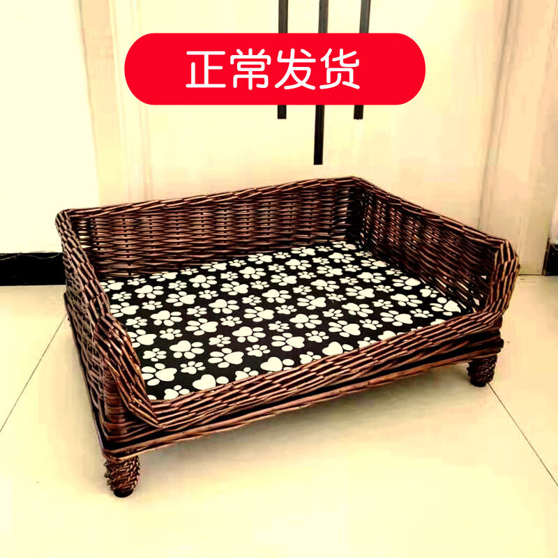 新款狗床离地柳编狗窝狗筐离地狗床猫窝夏季凉席垫金毛泰迪大中小型犬四季通用 咖啡色 棉垫 大号95*60(70斤以内)