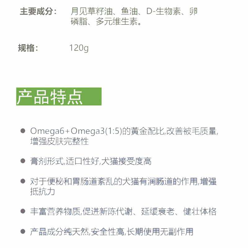 猫狗皮毛鱼油营养膏120g猫咪狗滋养毛发