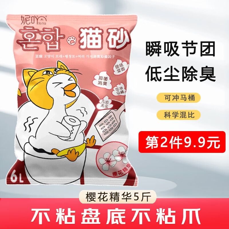 妮吖豆腐猫砂混合钠基膨润土除臭低尘可冲马桶小颗粒猫咪用品 樱花精华|1袋2.5kg