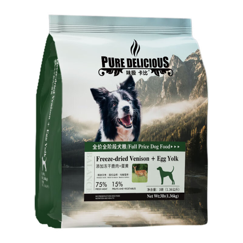 味极卡比狗粮通用型双拼牛肉生骨肉蛋黄鲜肉犬粮成犬幼犬宠物干粮 狗粮冻干鲜肉鹿肉蛋黄 1.36kg