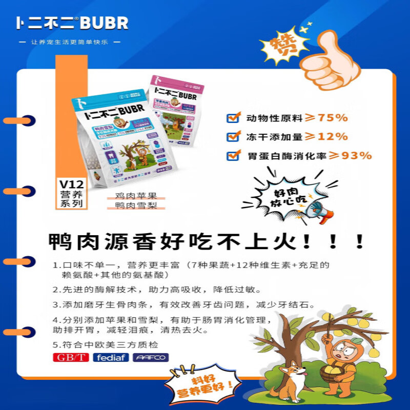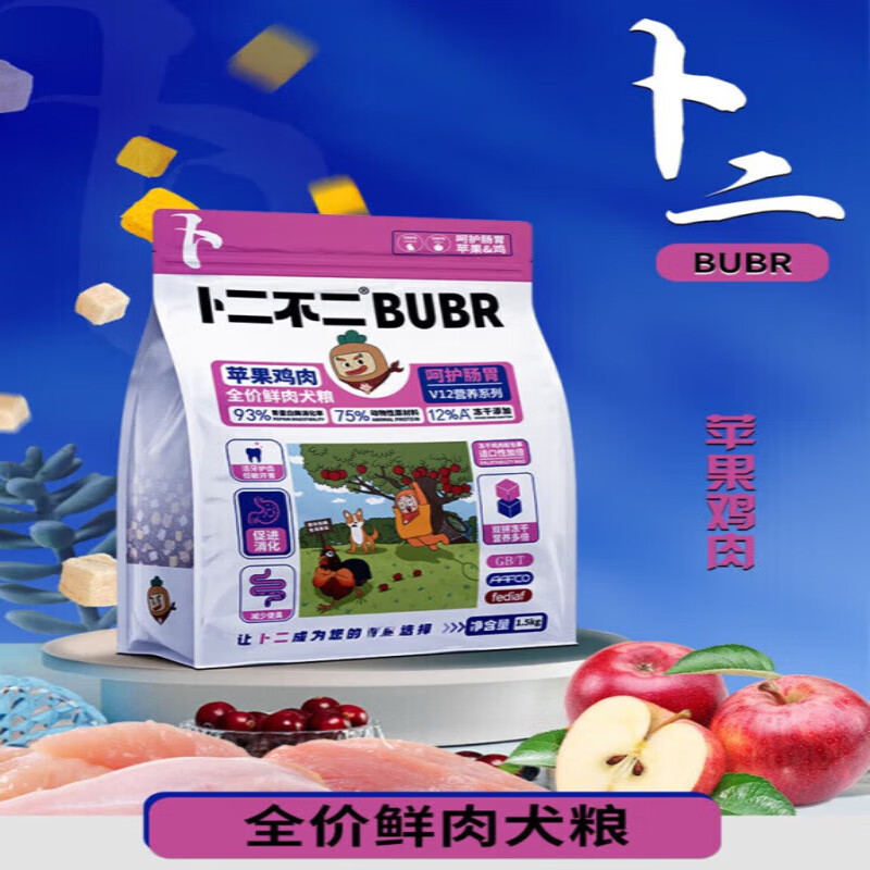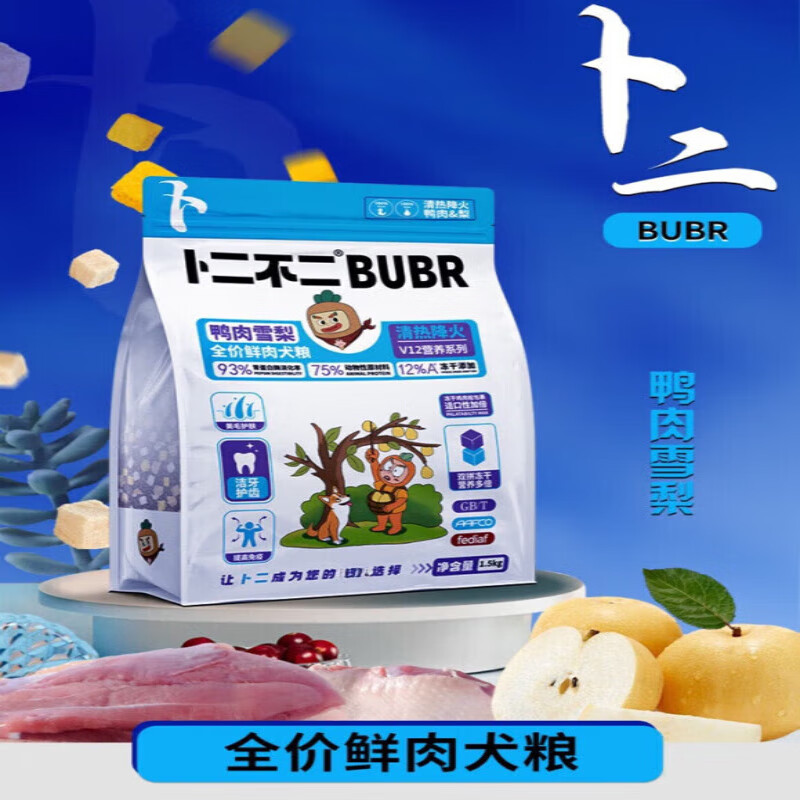 卜二不二全价鲜肉犬粮营养低敏冻干成犬幼犬粮增肥泰迪柯基通用 【清热降火】鸭肉 雪梨 1.5kg