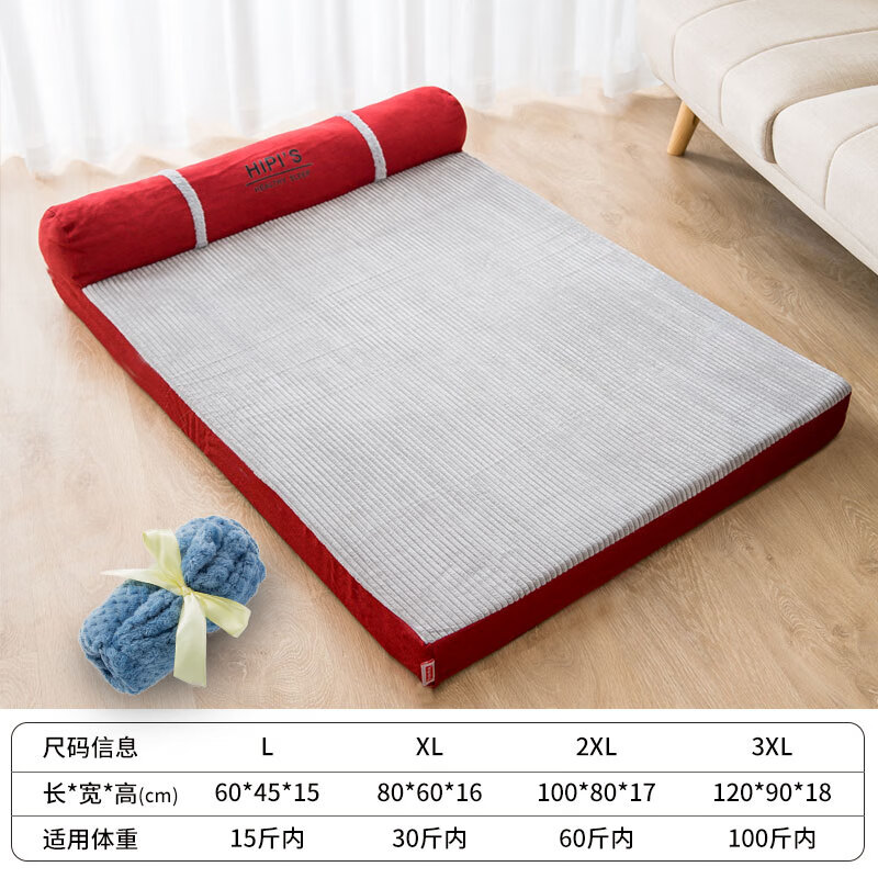 嬉皮狗狗窝四季通用秋冬保暖可拆洗大型犬金毛狗狗睡垫大狗狗垫子宠物床 酒红色单面靠(搭配毛毯) 3XL(适用100斤内)