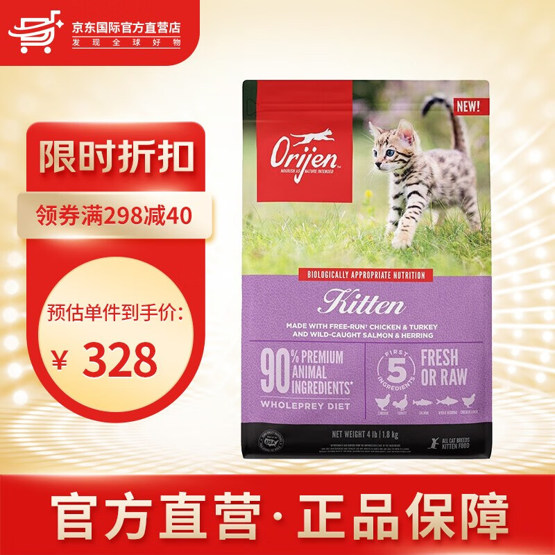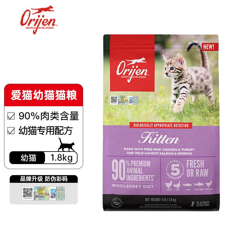 orijen渴望爱猫幼猫猫粮成长发育营养猫粮鸡肉适口高蛋白粮 美国进口 幼猫鸡肉1.8kg
