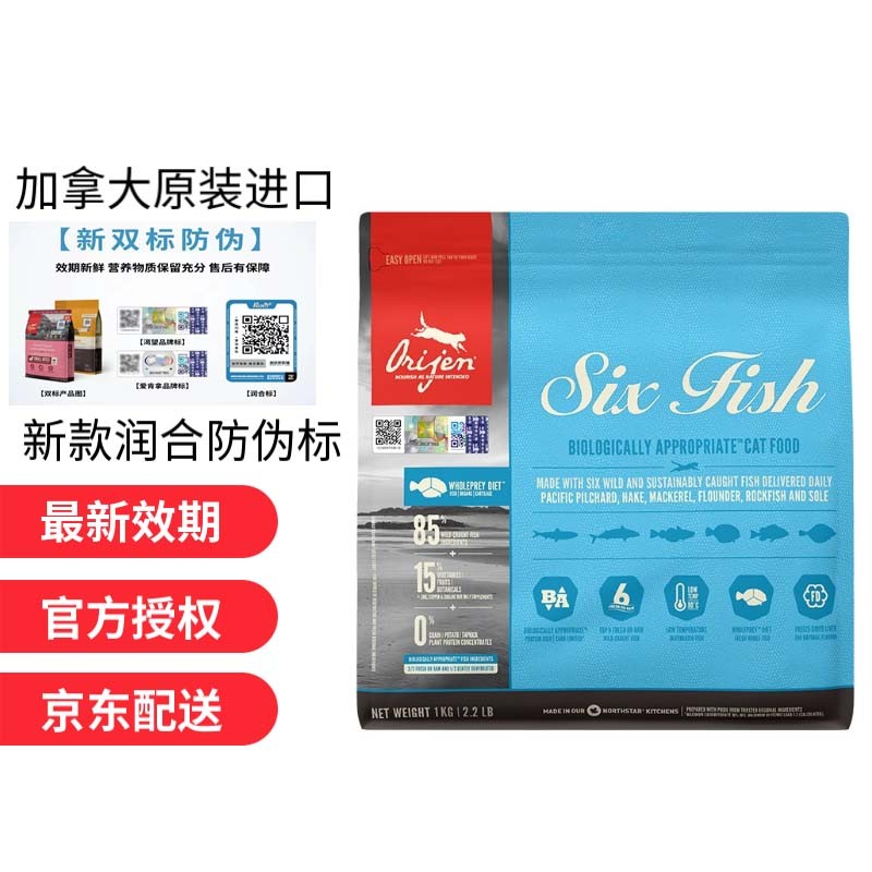 【双标防伪】渴望(Orijen)鸡肉味鱼肉猫粮5.4kg 成猫幼猫通用粮 六种鱼1kg【效期23年3月】