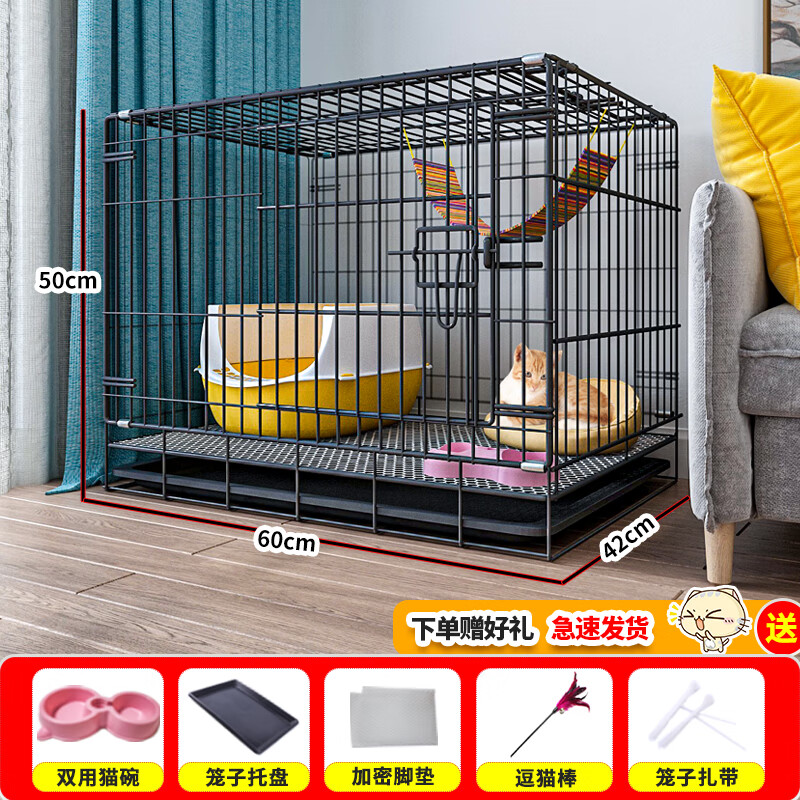 享宁静猫笼家用带厕所一体超大号猫别墅免安装猫屋舍幼猫成猫咪用品 单层折叠款【60*42*50】适合幼猫 黑色