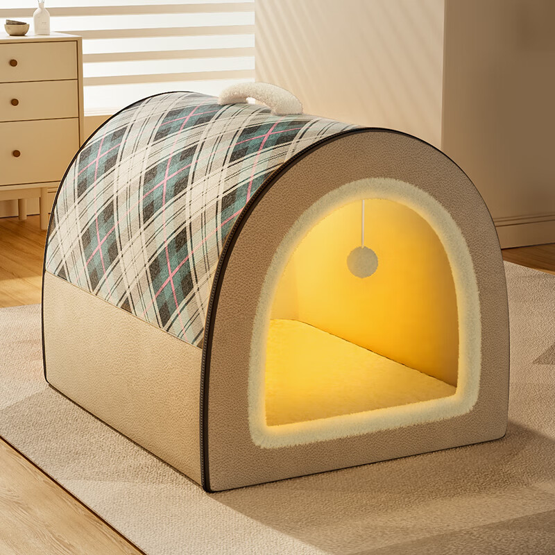 小许狗窝冬季保暖中大型小型犬狗床可拆洗猫房子猫窝狗窝四季通用 拼色房子窝 S【37*34*27】建议5斤内