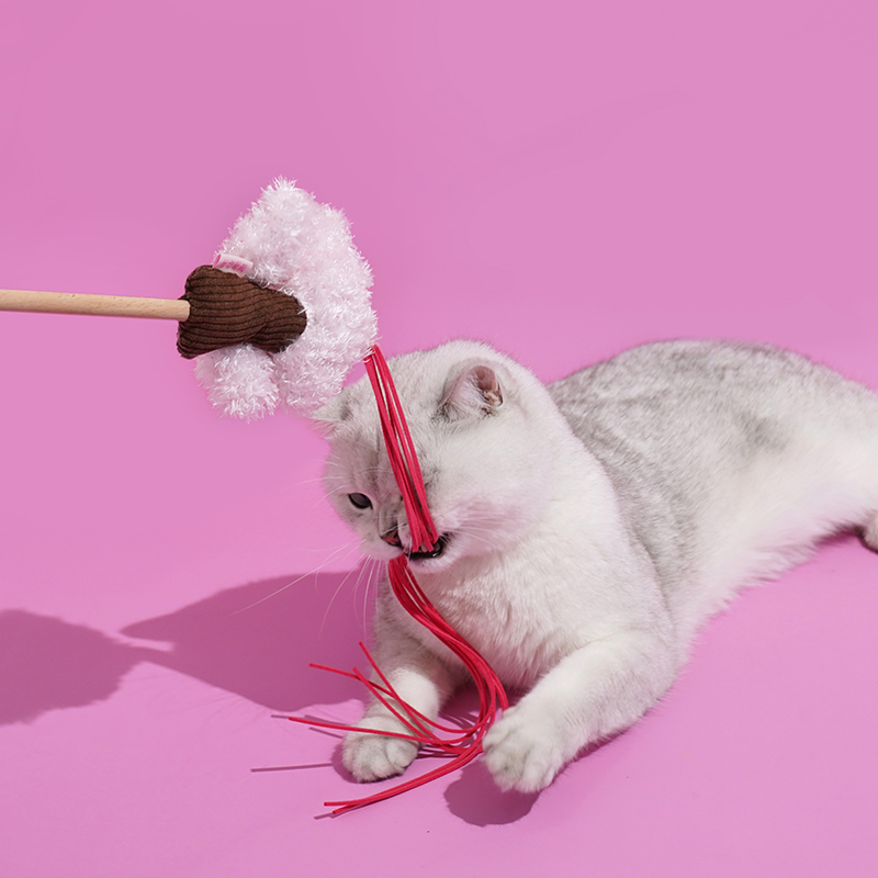 zeze猫咪逗猫棒解闷自嗨神器幼猫耐咬青松樱花毛绒球逗猫玩具用品