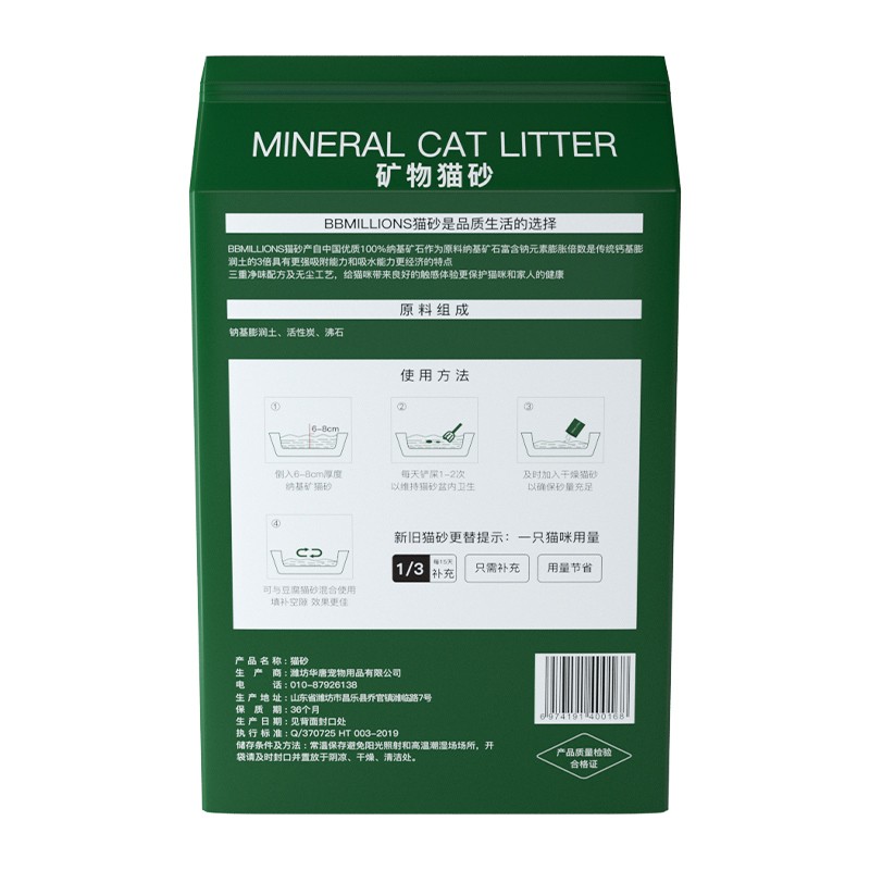 BBMILLIONS矿物质猫砂 快速结团不粘底无尘吸臭除味矿石钠基膨润土4.5KG