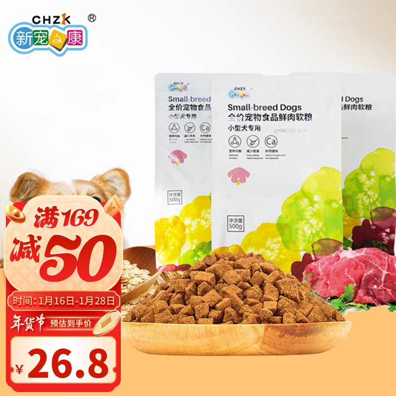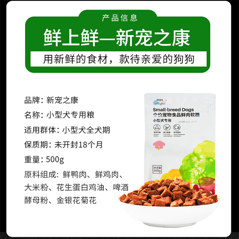 新宠之康 鲜上鲜小型犬狗粮500g 鲜肉蔬菜软粮 幼犬成犬泰迪比熊博美柯基犬通用全阶段狗粮