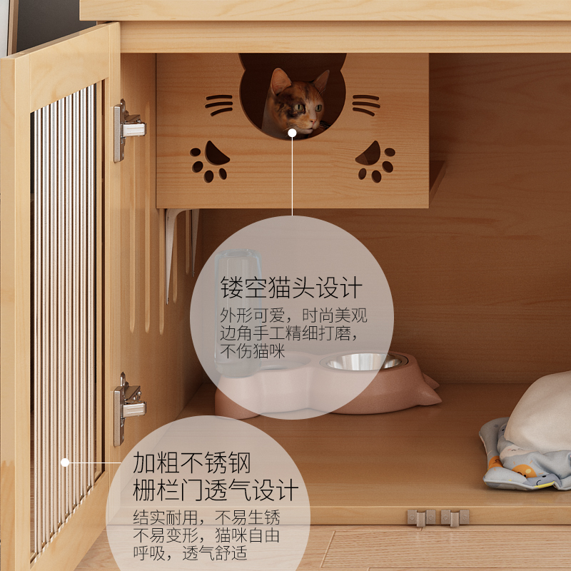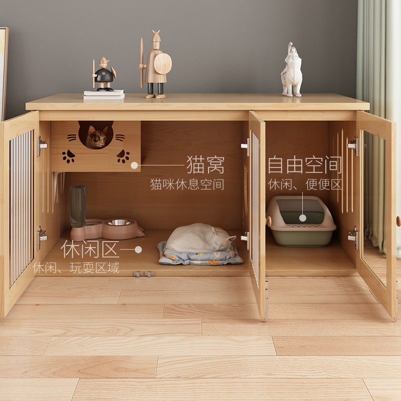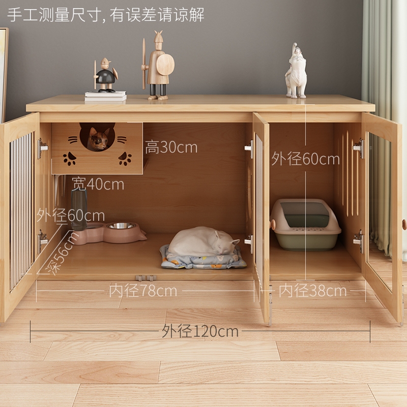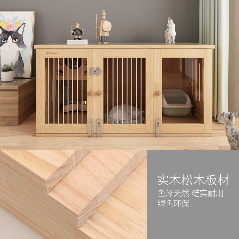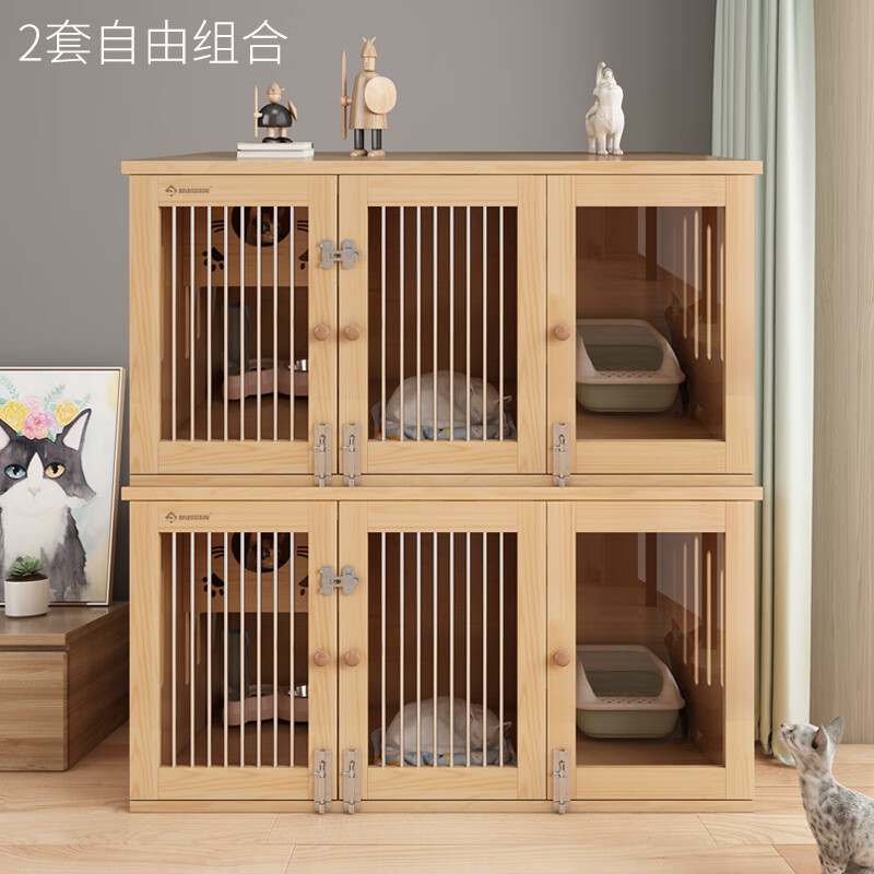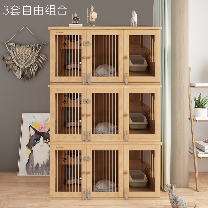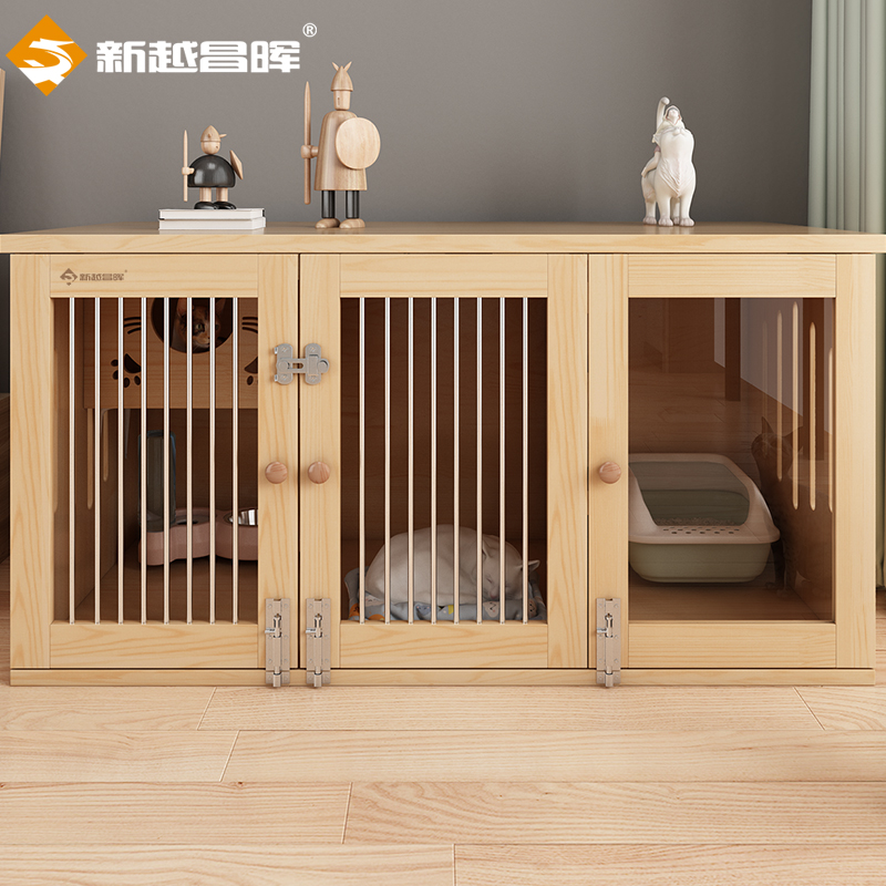 新越昌晖猫笼子猫别墅实木猫柜子 猫窝猫屋猫舍猫房 豪华宠物屋 透气可移动式展示柜高60宽120*深60cm