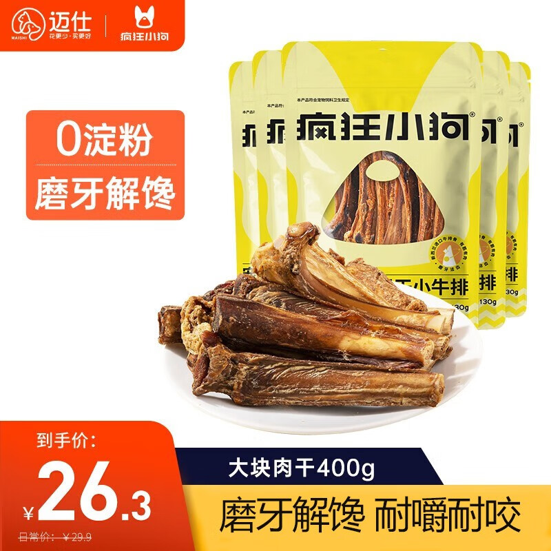 疯狂小狗狗零食磨牙棒耐咬牛肋骨宠物泰迪金毛大型成犬洁齿骨头通用 风干小牛排130g*5包