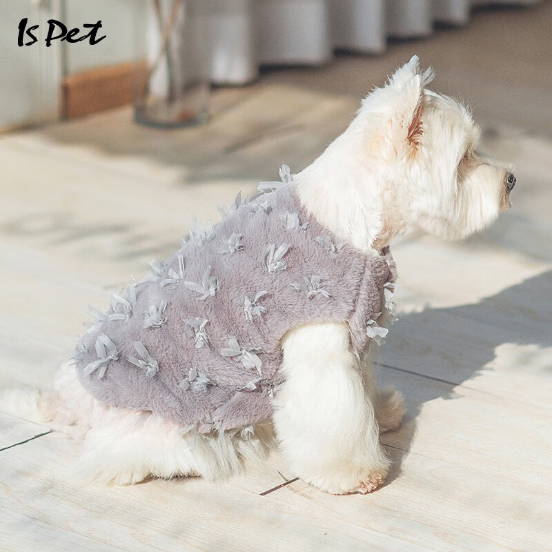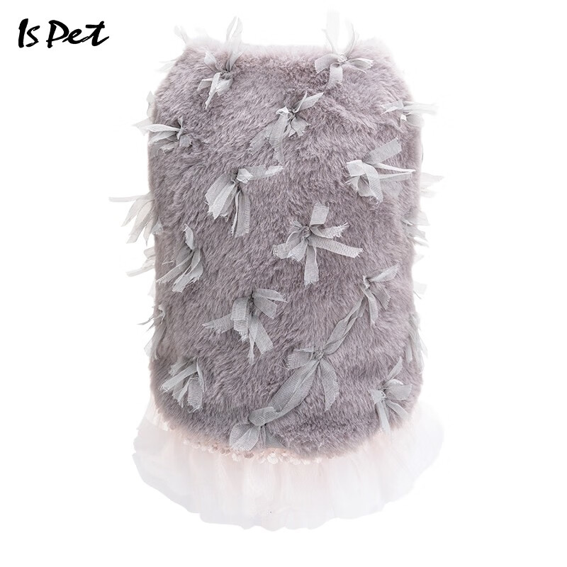 ISPET狗狗衣服秋冬装亲肤保暖 雪纳瑞柴犬2024新款网纱蝴蝶结外套 灰色 S(建议2-4斤)