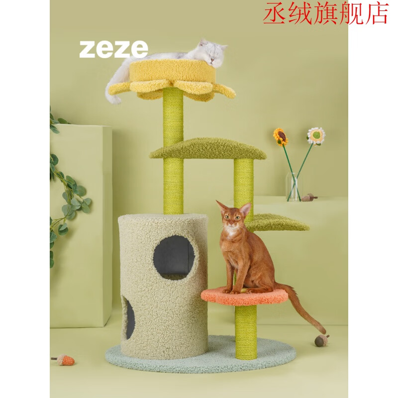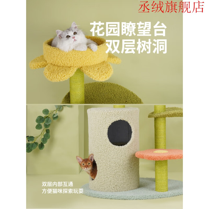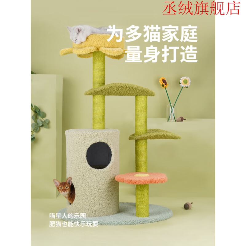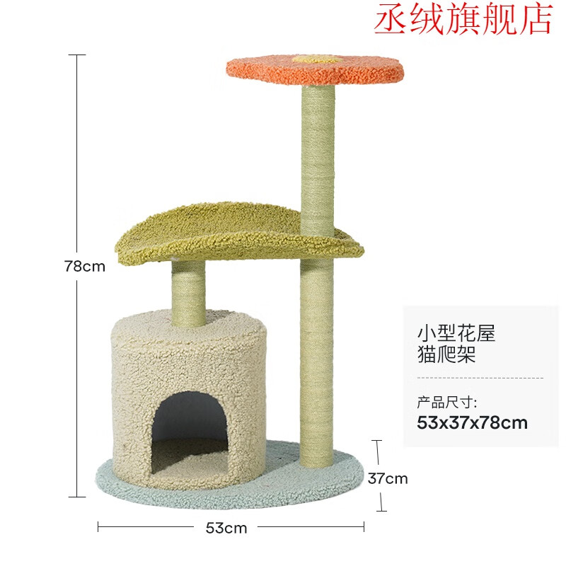 【闪电发货】猫窝冬天多层 荷叶猫爬架猫窝一体通天柱猫树猫架猫爬架猫爬柱多层爬架 艾朵拉小屋(53*37*78cm)