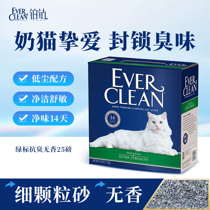 铂钻【美国原装进口】猫砂膨润土成猫幼猫通用型猫咪活性炭混合矿砂 绿标25磅/11.3kg