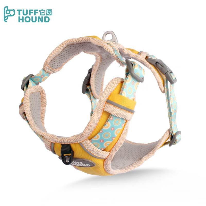 Tuffhound狗狗牵引绳遛狗绳子狗链子中型小型大型犬拉布拉多金毛金毛柯基胸背带防爆冲轻便型背心式 黄色(无牵引绳) L(胸围:56-73cm 建议28-45斤选择)