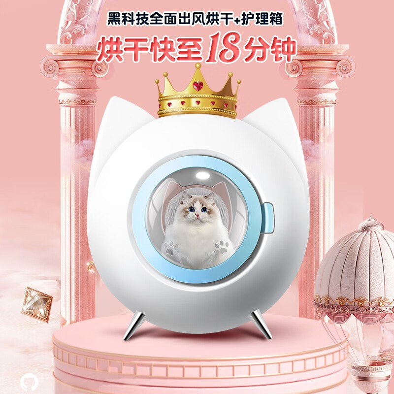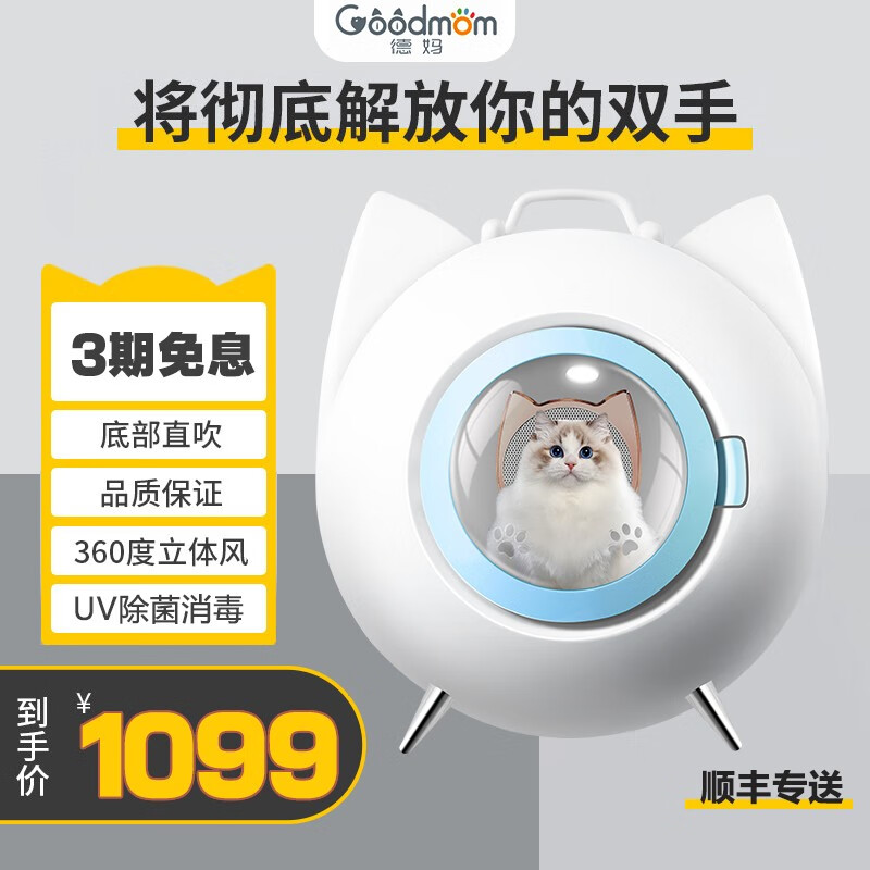 德妈宠物烘干箱猫咪吹风机烘干机底部出风全自动智能狗狗吹水机 白 手提 消毒 照明 集毛(适合30斤内宠物用)