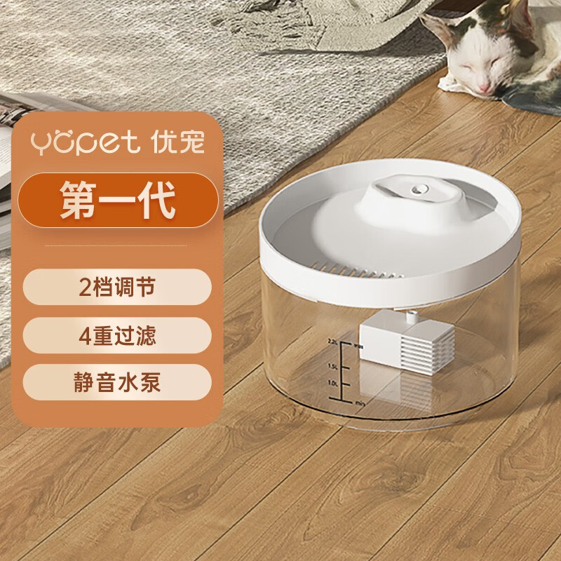 优宠(Yopet)宠物猫咪饮水机 无线感应自动循环流动活水过滤 狗狗宠物碗喂水器 第一代透明基础款丨斜口方便喂养