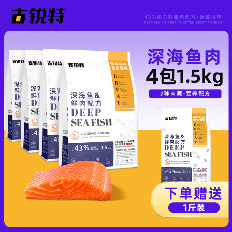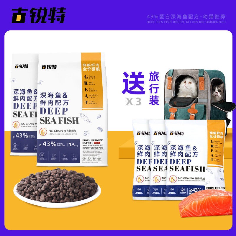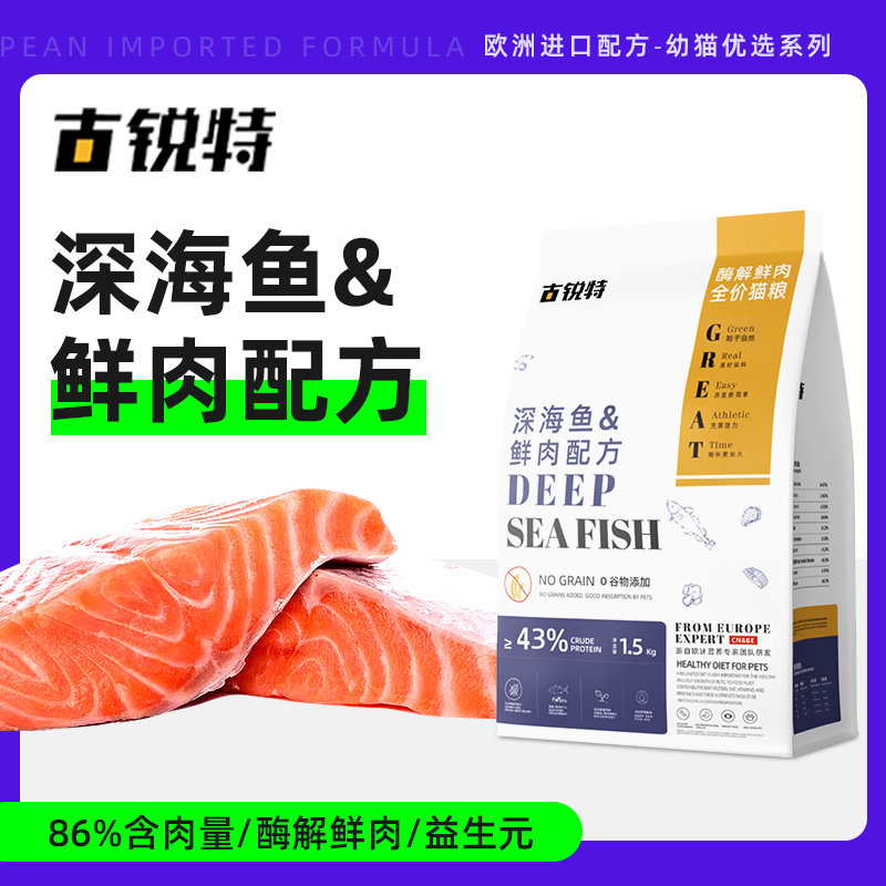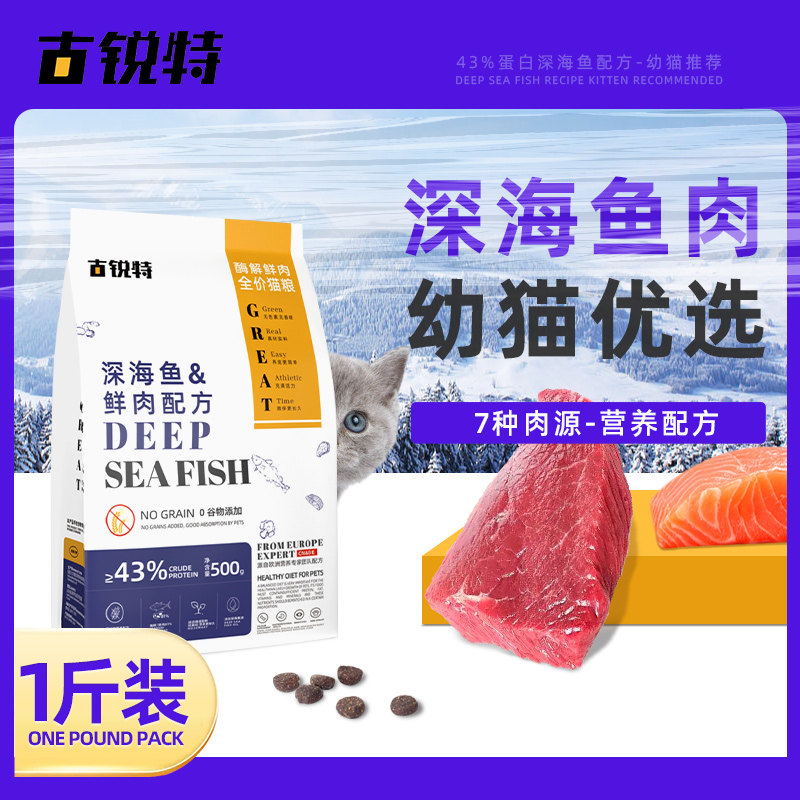 古锐特幼猫深海鱼营养猫猫干粮无谷高蛋白鲜肉配方全价品牌猫粮袋