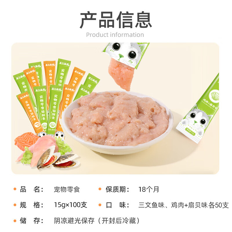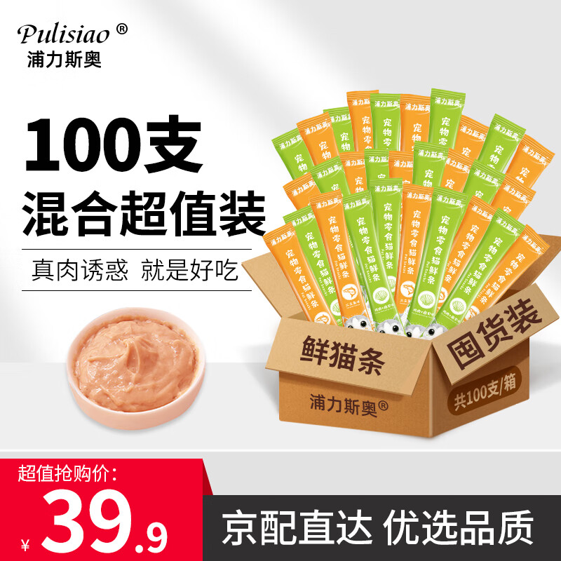 浦力斯奥猫条100支猫零食宠物猫湿粮流质猫咪肉条护肠胃营养混合味整箱