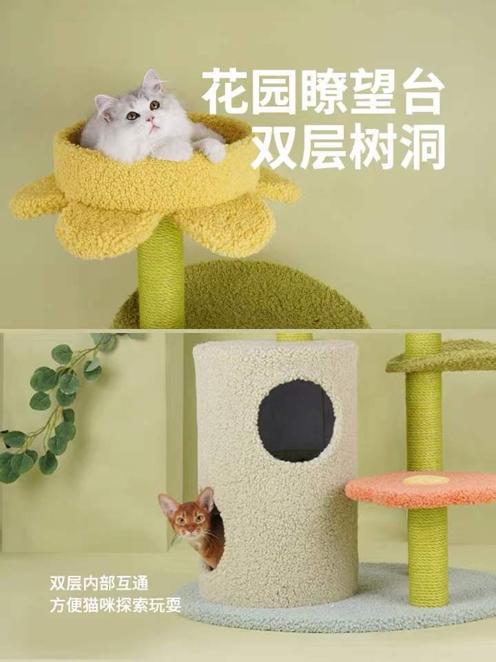 catry凯瑞花朵豪华实木猫爬架中型大型猫跳台猫窝一体剑麻磨爪