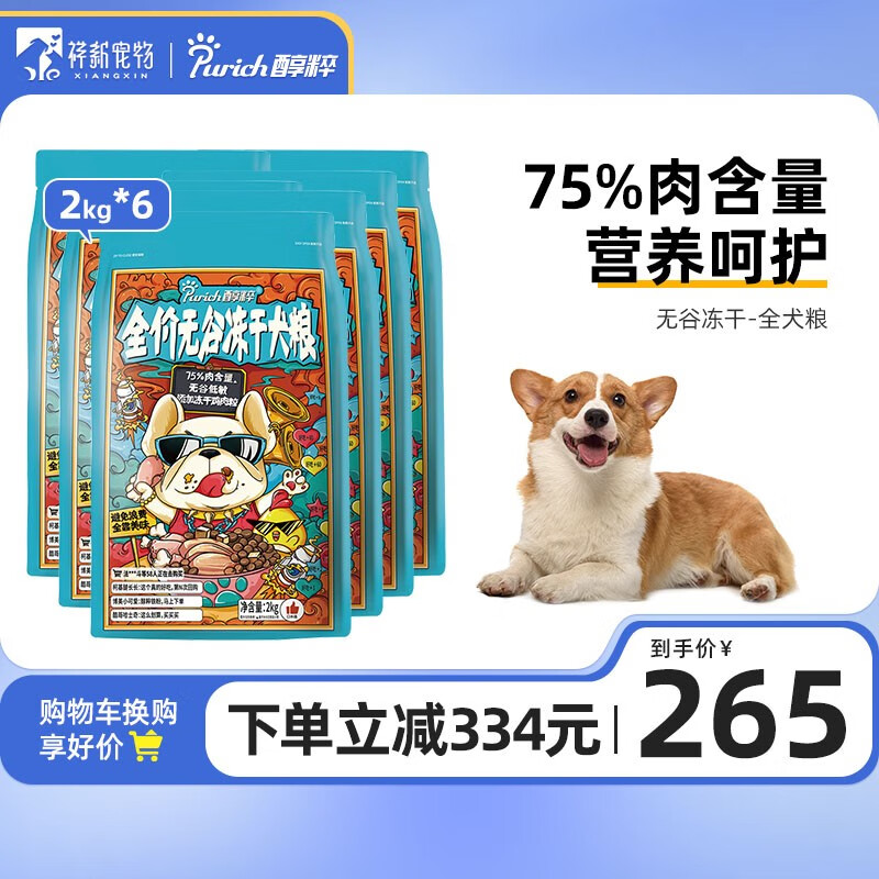 醇粹狗粮 纯粹冻干粮成犬幼犬全价粮 【老客推荐】全价冻干粮 12kg(2kg*6)
