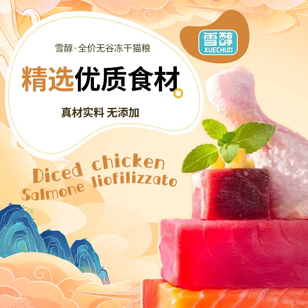 雪醇猫粮天然无谷三文鱼鸡肉冻干成猫幼猫通用营养增肥发腮全阶段