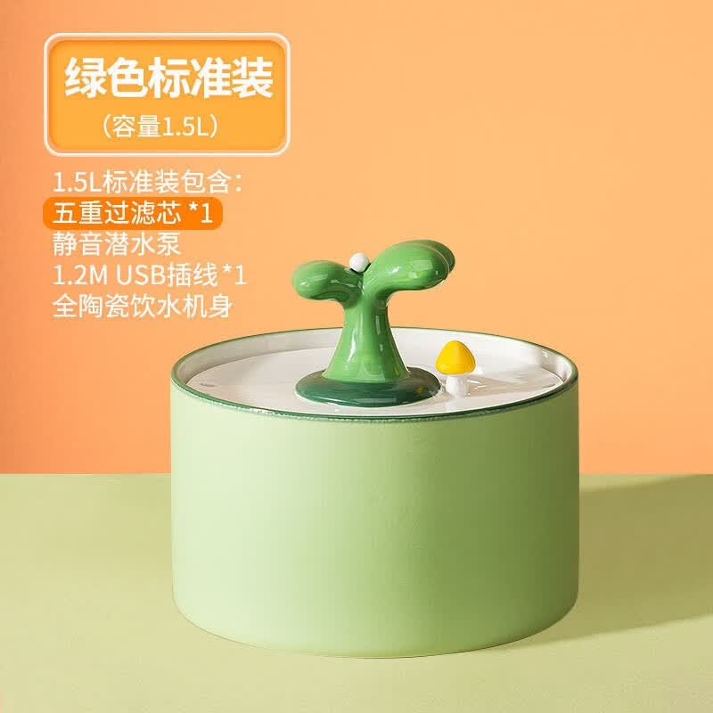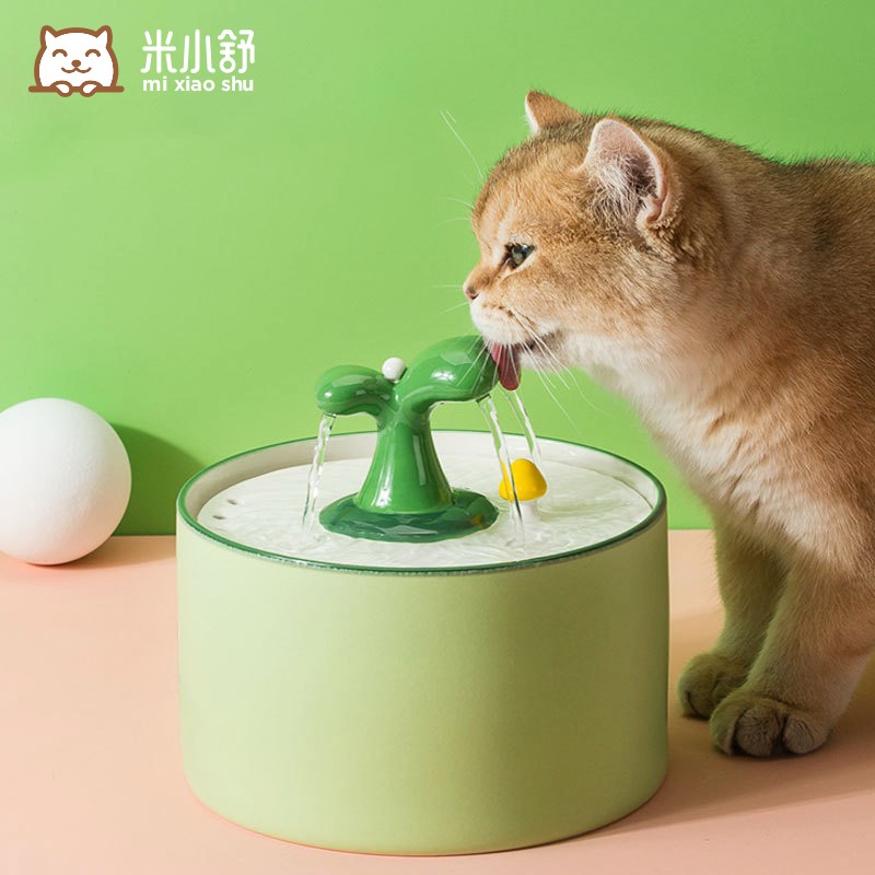 米小舒猫咪饮水机宠物自动喂水猫喝水猫水盆饮水有线感应喝水器插电智能循环水泵小猫幼猫猫狗喂水器 陶瓷 全陶瓷绿色【1500ML]