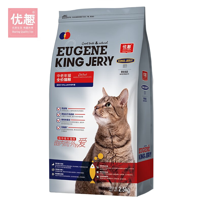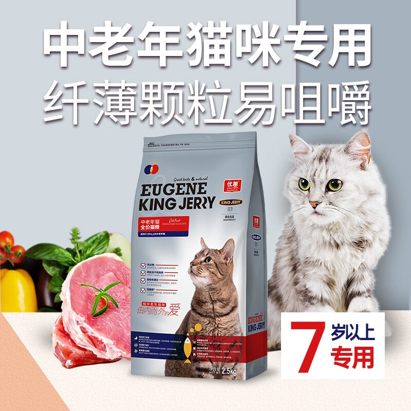 KINGJERRY中老年猫粮2.5kg老猫高龄猫均衡体态猫粮5岁以上猫咪添加鸡肉松 中老年无谷猫粮5斤添加鸡肉松