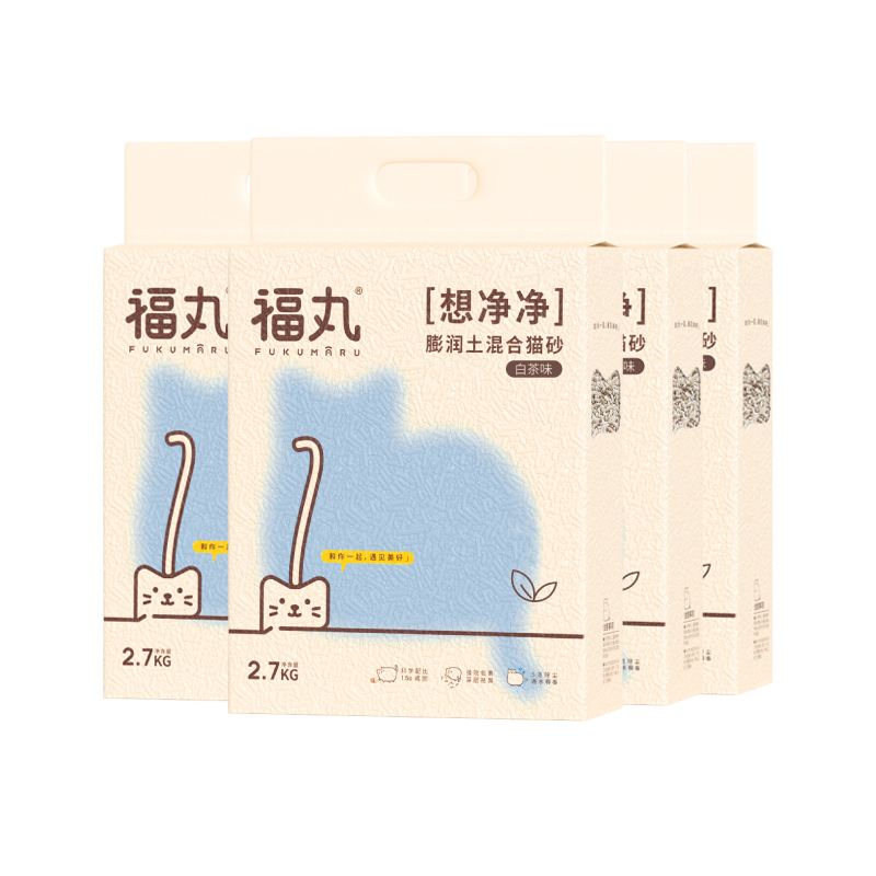 福丸 白茶味豆腐膨润土混合猫砂除臭低尘猫砂 2.7kg*4 整箱