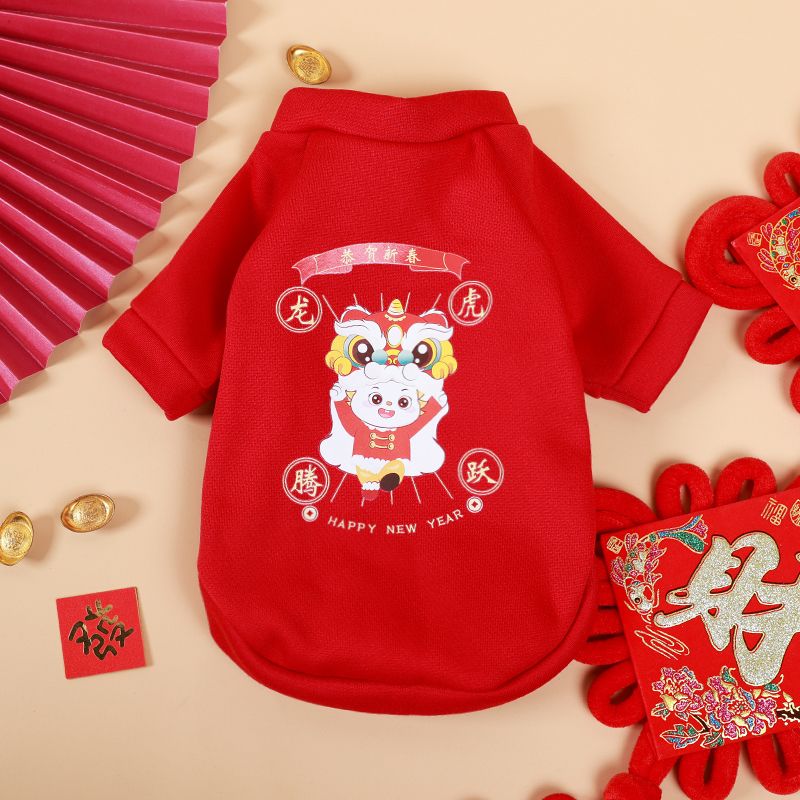 风宠新款宠物衣服猫咪小型犬冬季保暖泰迪比熊博美幼犬狗狗衣服秋冬款 红色卫衣-龙腾虎跃 M -建议4-6斤