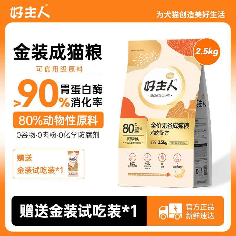 好主人(CARE)猫粮2.5kg金装成猫幼猫全价无谷通用粮营养增肥发腮鸡肉经典5斤装 金装2.0全价成猫粮