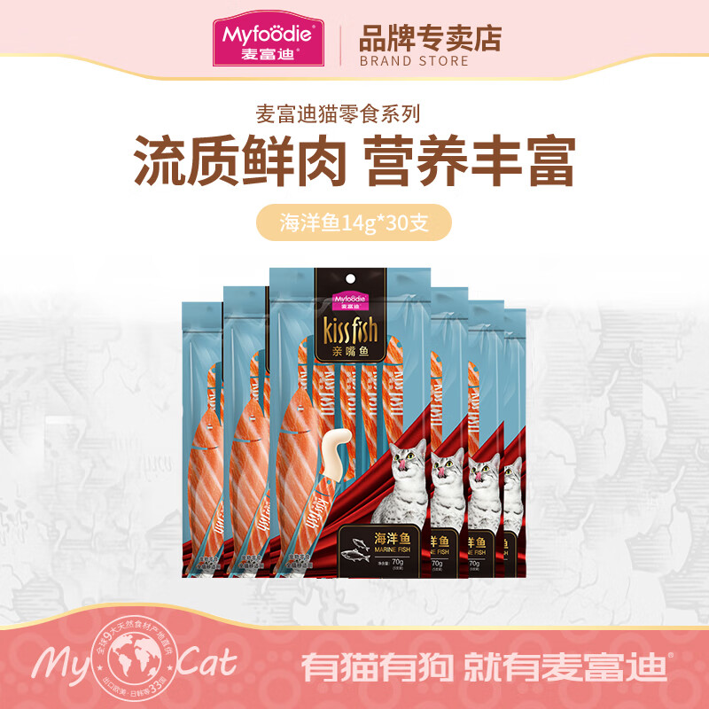 麦富迪猫条猫零食 湿粮亲嘴鱼营养补水幼猫肉酱 海洋鱼14g*30支