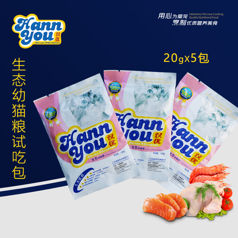 汉优 生态猫粮试吃装 三文鱼鲜虾奶糕配方全营养通用型幼猫猫粮20g*5包