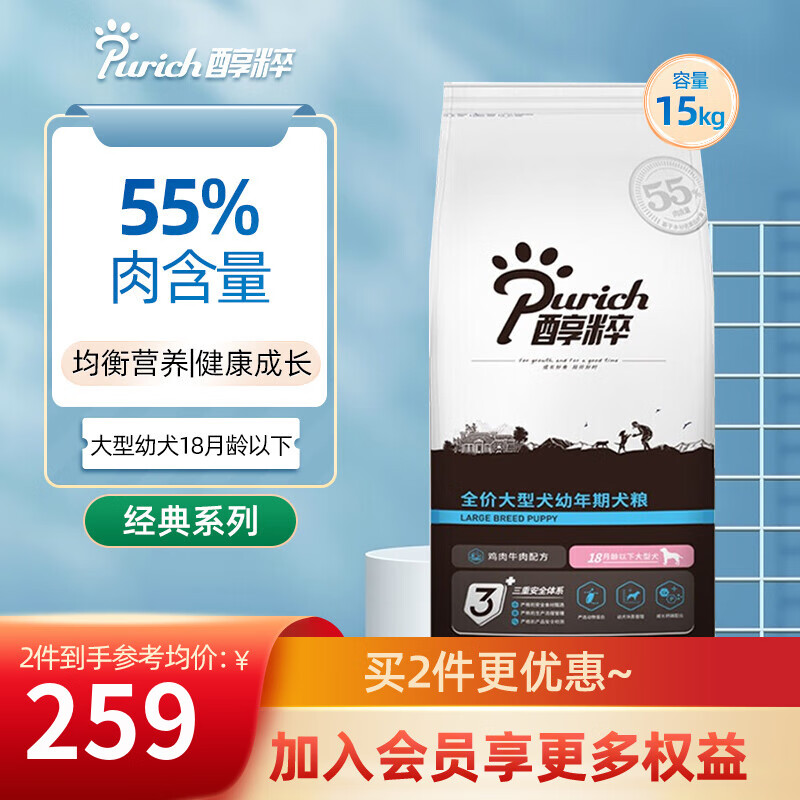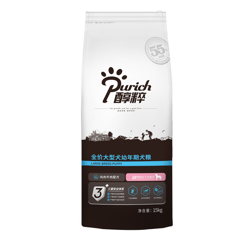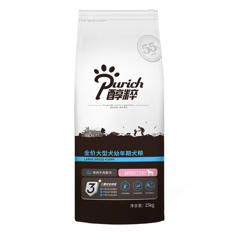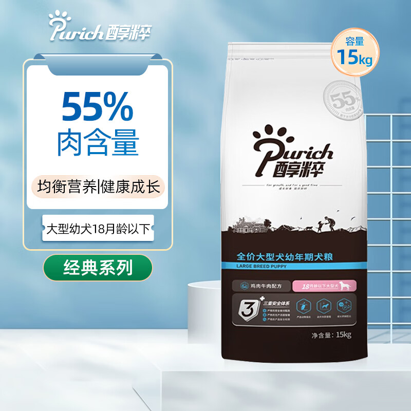 醇粹狗粮 大型犬粮拉布拉多金毛法斗萨摩耶纯粹狗粮 大型幼犬15kg(30斤) 全犬期 大型犬