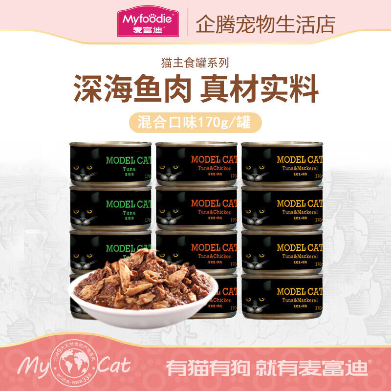 麦富迪猫罐头 模特猫主食罐猫咪零食成猫幼猫通用猫湿粮宠物拌饭鲜封粮 【大罐装】混合口味170g 24罐